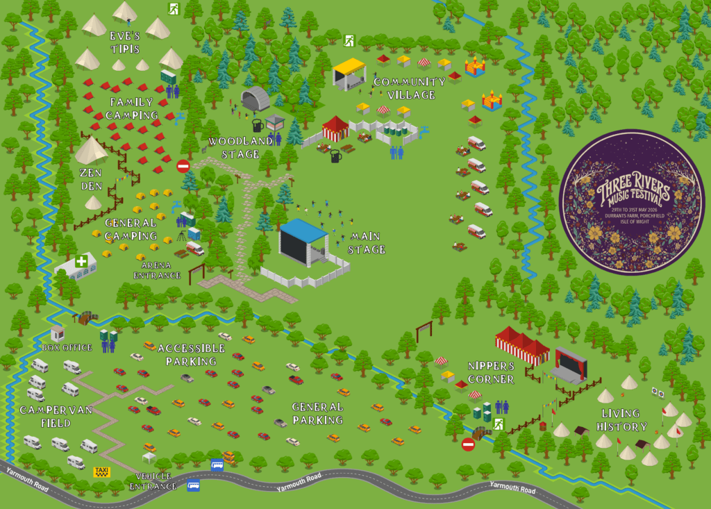 Three Rivers Festival is a family-friendly, community-focused music and arts festival held at Durrants Farm in Porchfield, Isle of Wight. It features live bands, DJs, dance music takeovers, wellness activities, kids entertainment, workshops, traders, and local food.